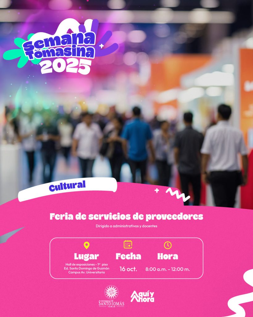 Ver Todos Los Eventos Feria de Servicios de Proveedores octubre 16 @ 8:00 am - 12:00 pm Event Navigation « Bingo Partido de Exhibición de Ultimate » Detalles Fecha: octubre 16 Hora: 8:00 am - 12:00 pm Categoría del Evento: Ferias, Jueves Lugar Hall de exposiciones – 1er piso Edificio Santo Domingo de Guzmán Organizador Dirección de Gestión de Talento Humano + Google Calendar+ iCal Export Anterior Bingo Siguiente Partido de Exhibición de Ultimate