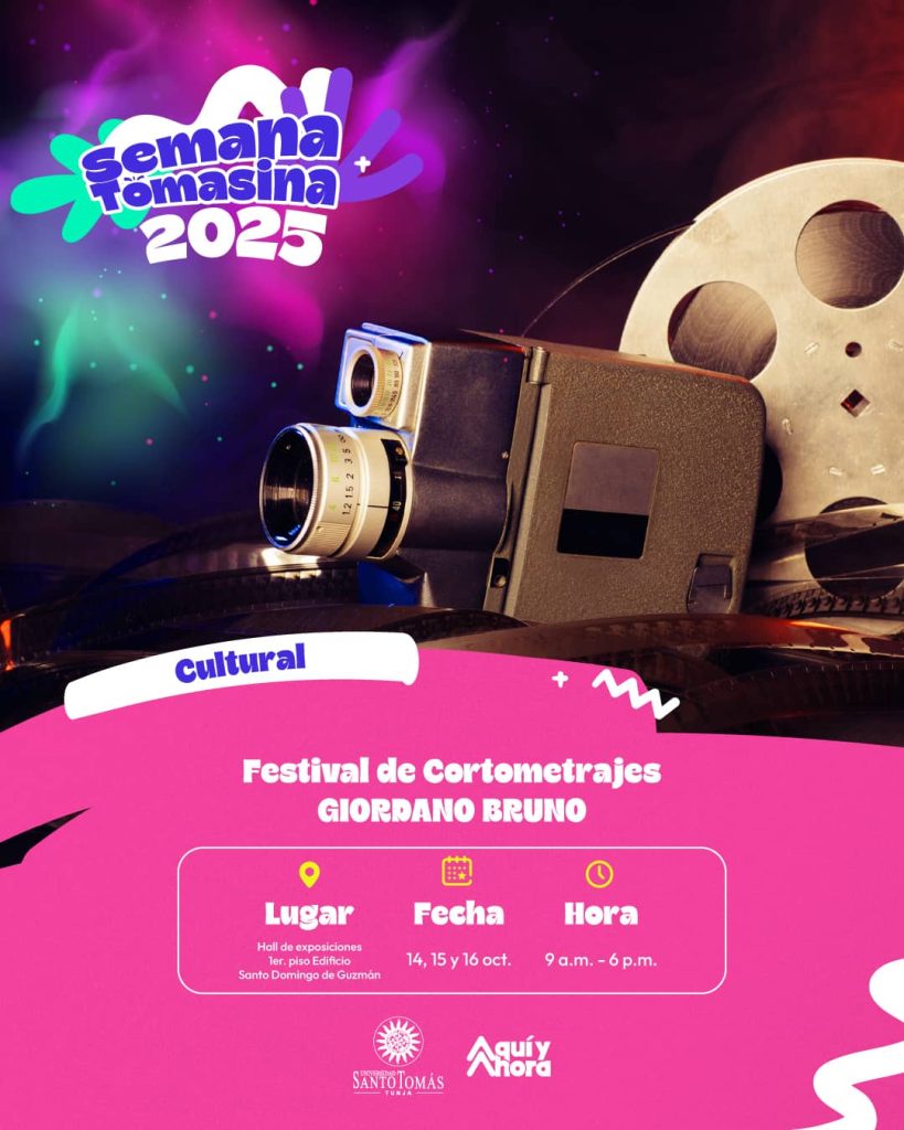 Ver Todos Los Eventos Festival de Cortometrajes Giordano Bruno octubre 14 @ 9:00 am - octubre 16 @ 6:00 pm Event Navigation « Función de la Obra: El Canto de la Muerte Vertical Race Santoto » Detalles Fecha de Inicio: octubre 14 @ 9:00 am Fecha de Fin: octubre 16 @ 6:00 pm Categoría del Evento: Cultural, Martes Lugar Hall de exposiciones – 1er piso Edificio Santo Domingo de Guzmán Organizador Departamento de Promoción y Bienestar Institucional. + Google Calendar+ iCal Export Anterior Función de la Obra: El Canto de la Muerte Siguiente Vertical Race Santoto