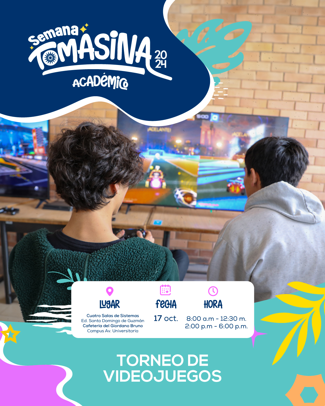 This event has passed. Ver Todos Los Eventos Torneo de Videojuegos Oct 17, 2024 @ 8:00 am - 6:00 pm | Gratis Event Navigation « Competencia de fuerza prensil y de potencia miembros inferiores Torneo de bolirana para estudiantes » Dirigido a: Estudiantes Detalles Fecha: Oct 17, 2024 Hora: 8:00 am - 6:00 pm Costo: Gratis Categoría del Evento: Académico, Jueves Lugar Sala de Sistemas 1, 2 y 3 Edificio Giordano Bruno, O.P. Campus Avenida Universitaria Organizador Facultad de Ingeniería de Sistemas + Google Calendar+ iCal Export Anterior Competencia de fuerza prensil y de potencia miembros inferiores Siguiente Torneo de bolirana para estudiantes