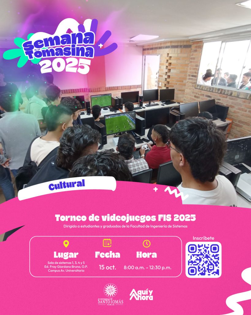 This event has passed. Ver Todos Los Eventos Torneo de Videojuegos FIS 2025 octubre 15 @ 8:00 am - 12:30 pm Event Navigation « Misión Insight Decifrando los Códigos del Conocimiento Santoto Music Fest y Festival de la Canción Tomasina » Inscribirme Detalles Fecha: octubre 15 Hora: 8:00 am - 12:30 pm Categoría del Evento: Concursos y Olimpiadas, Miércoles Lugar Salas de Sistemas 1, 3, 4 y 5 – Edificio Giordano Bruno Organizador Facultad de Ingeniería de Sistemas + Google Calendar+ iCal Export Anterior Misión Insight Decifrando los Códigos del Conocimiento Siguiente Santoto Music Fest y Festival de la Canción Tomasina