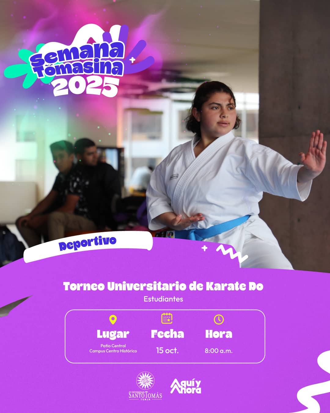 This event has passed. Ver Todos Los Eventos Torneo Universitario de Karate Do octubre 15 @ 8:00 am - 12:00 pm Event Navigation « Santoto Music Fest y Festival de la Canción Tomasina Open Santoto Tenis de Mesa » Detalles Fecha: octubre 15 Hora: 8:00 am - 12:00 pm Categoría del Evento: Deporte y Actividad Física, Miércoles Lugar Patio Central Campus Centro Histórico Organizador Departamento de Promoción y Bienestar Institucional. + Google Calendar+ iCal Export Anterior Santoto Music Fest y Festival de la Canción Tomasina Siguiente Open Santoto Tenis de Mesa